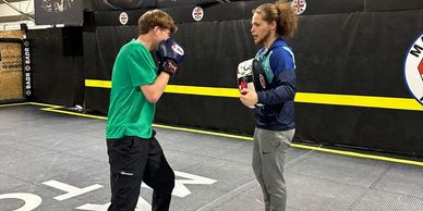 At the same time, students take part in 1:1 or small-group MMA coaching, covering disciplines such as Striking, Brazilian Jiu-Jitsu, Wrestling, Tae Kwon Do, and Thai Boxing.